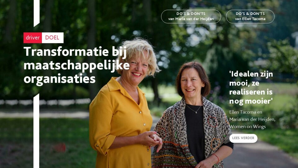 Maria: ‘Veel maatschappelijke organisaties zijn bezig met prove – ofwel bewijzen dat ze de goede dingen doen -, maar minder met improve – hoe meet ik mijn impact en optimaliseer ik voortdurend mijn activiteiten? Bedrijven hebben met klanten te maken. Die klant maakt dat je scherp bent, omdat je de interactie moet aangaan. En dat zorgt dat je bij de tijd blijft. Maatschappelijke organisaties hebben de verplichting om te checken of ze voldoende impact realiseren en daarmee relevant zijn en blijven.’